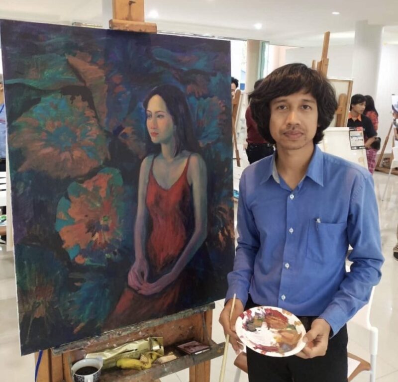 Assistant Professor Kraisorn Wichaikul teaches in the Department of Fine Arts at Rajamangala University of Technology Lanna in Chiang Mai. He was the winner of outstanding award in the 14th Panasonic Contemporary Painting competition, and his painting “Three Women at Tha Phrachan” also received Platinum Award in the 3rd UOB Thailand Painting competition in 2012.